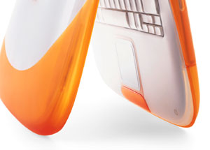 Det første du vil lægge mærke til ved iBook, er det fristende design og den utrolige sans for detaljer. Du kan få iBook i to herlige, gennemsigtige farver, begge med spektakulær form, der helt sikkert vil tiltrække opmærksomhed. Prøv selv det bekvemme foldbare håndtag, så du kan se hvor let det er at tage iBook med dig overalt. Tænd så for computeren og glæd dig over klarheden i dens 12,1" aktive matriksfarveskærm (TFT).
