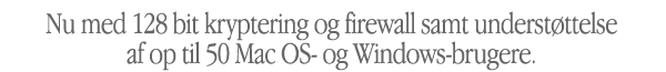 Op til 128 bit hosting På den måde kan AirPort-basen konfigureres til klienter, der bruger 40 eller 128 kryptering som en ekstra sikkerhed.