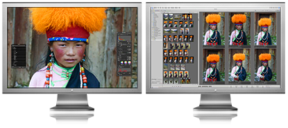GeForce 7300 GT leveres med en dual-link DVI- og en single-link DVI-port, så du kan slutte en 30" Apple Cinema HD-skærm til dual-link DVI-porten og en 20" eller 23" Cinema-skærm til single-link DVI-porten. Eller slutte to 30" skærme til enten ATI Radeon X1900 XT eller NVIDIA Quadro FX 4500. Begge er udstyret med to dual-link DVI-porte.