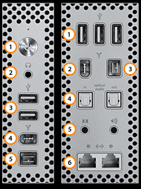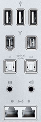 Mac Pro har 16 porte til tilslutning af netværks- og eksterne enheder. Det omfatter fem porte på forsiden: Under