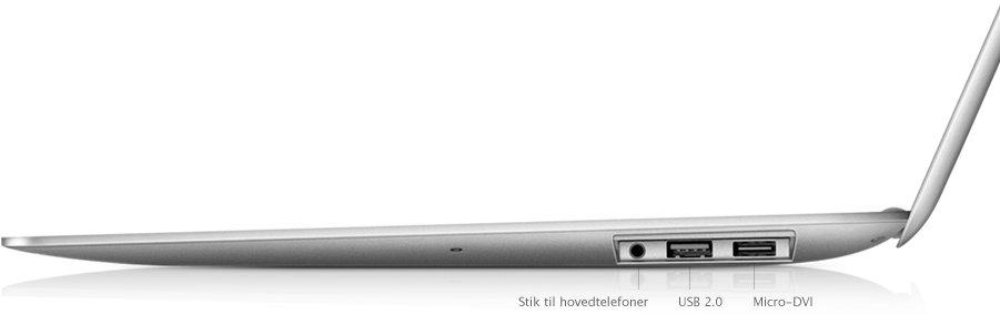 Det innovative dæksel over portene skjuler (når det er lukket) og giver dig adgang til (når det er åbent) alle de porte, du virkelig har brug for: En USB 2.0-port, et stik til hovedtelefoner og en micro-DVI-port, som understøtter DVI, VGA, composite og S-video. Selv MagSafe-strømdelen er blevet fornyet og gjort endnu tyndere, så den passer til MacBook Air.