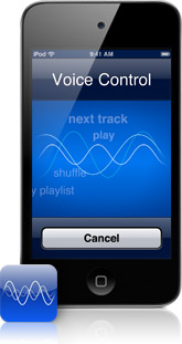 Control music playback on iPod touch using spoken commands.