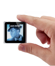 iPod nano er lutter musik og Multi-Touch. Den er mindre, lettere, farverig og slank. Du kan klemme den fast og tage den med dig overalt, så du altid har musikken inden for rækkevidde.
