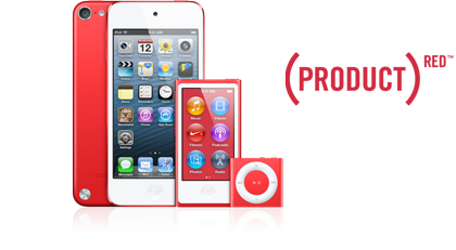 Når du køber en (PRODUCT) RED iPod touch, iPod nano eller iPod shuffle, giver Apple en del af købsprisen til den globale fond til bekæmpelse af AIDS i Afrika