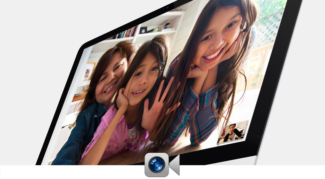 Få alle med på billedet med skarp HD-video i bredt format. Det indbyggede 720p FaceTime HD-kamera sikrer, at du kan lave videoopkald, der er så tydelige, at det virker, som om alle befinder sig i det samme lokale. Lav FaceTime-opkald fra din iMac til en FaceTime-kompatibel Mac, iPhone, iPad eller iPod touch.5