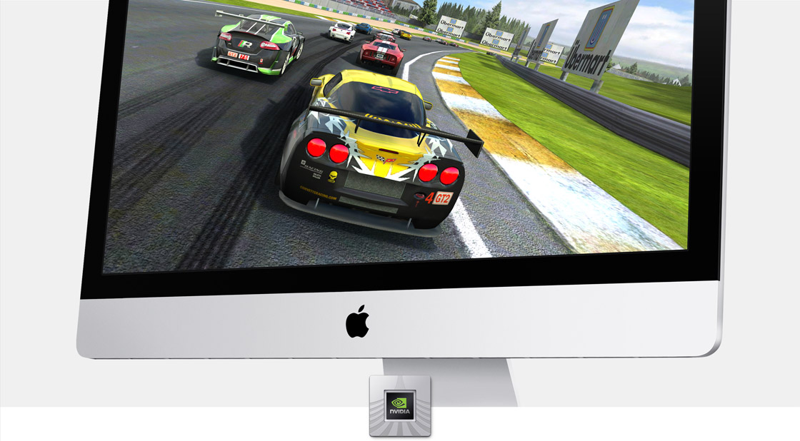 Alle nye iMac-modeller i sortimentet har avancerede NVIDIA GeForce-grafikprocessorer indbygget i Kepler-arkitekturen, og det giver op til 60% større ydeevne til grafikkrævende opgaver.1 Du ser flere billeder pr. sekund i 3D-spil, og du kan redigere HD-hjemmevideoer hurtigere og med større respons end nogensinde før.