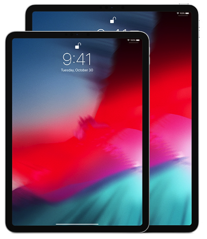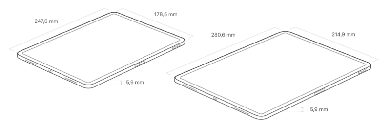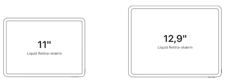 Skærmen på 11" iPad Pro har afrundede hjørner, som følger designets elegante kurver. Hjørnerne ligger inden for et format svarende til et almindeligt rektangel. Målt som et almindeligt rektangel er skærmen 11" diagonalt (det faktiske visningsområde er mindre).