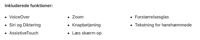 Tilgængelighedsfunktioner hjælper personer med handicap med at få mest muligt ud af deres nye iPad Pro. Takket være de indbyggede værktøjer, der hjælper ved udfordringer med syn og hørelse, fysiske og motoriske færdigheder, indlæring eller læsefærdigheder, kan alle lave fantastiske ting