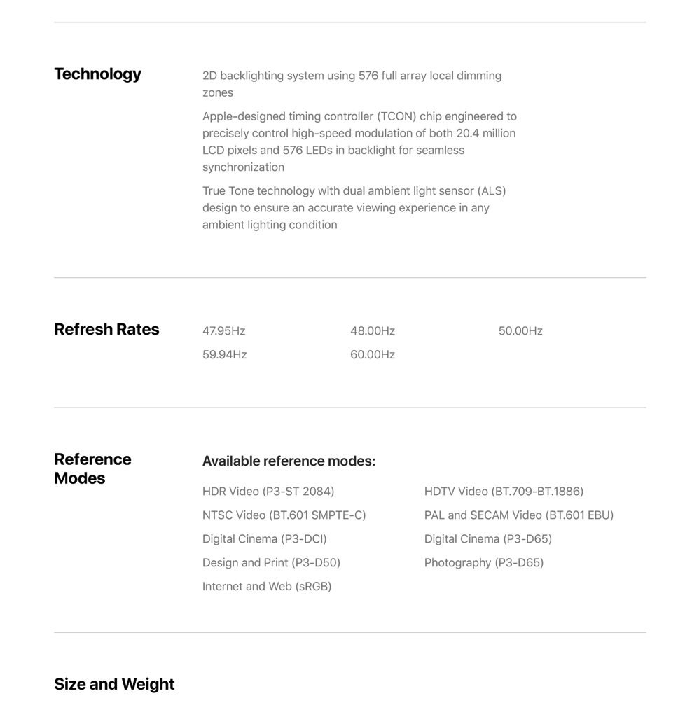 • Color: P3 wide color gamut, 10-bit depth for 1.073 billion colors