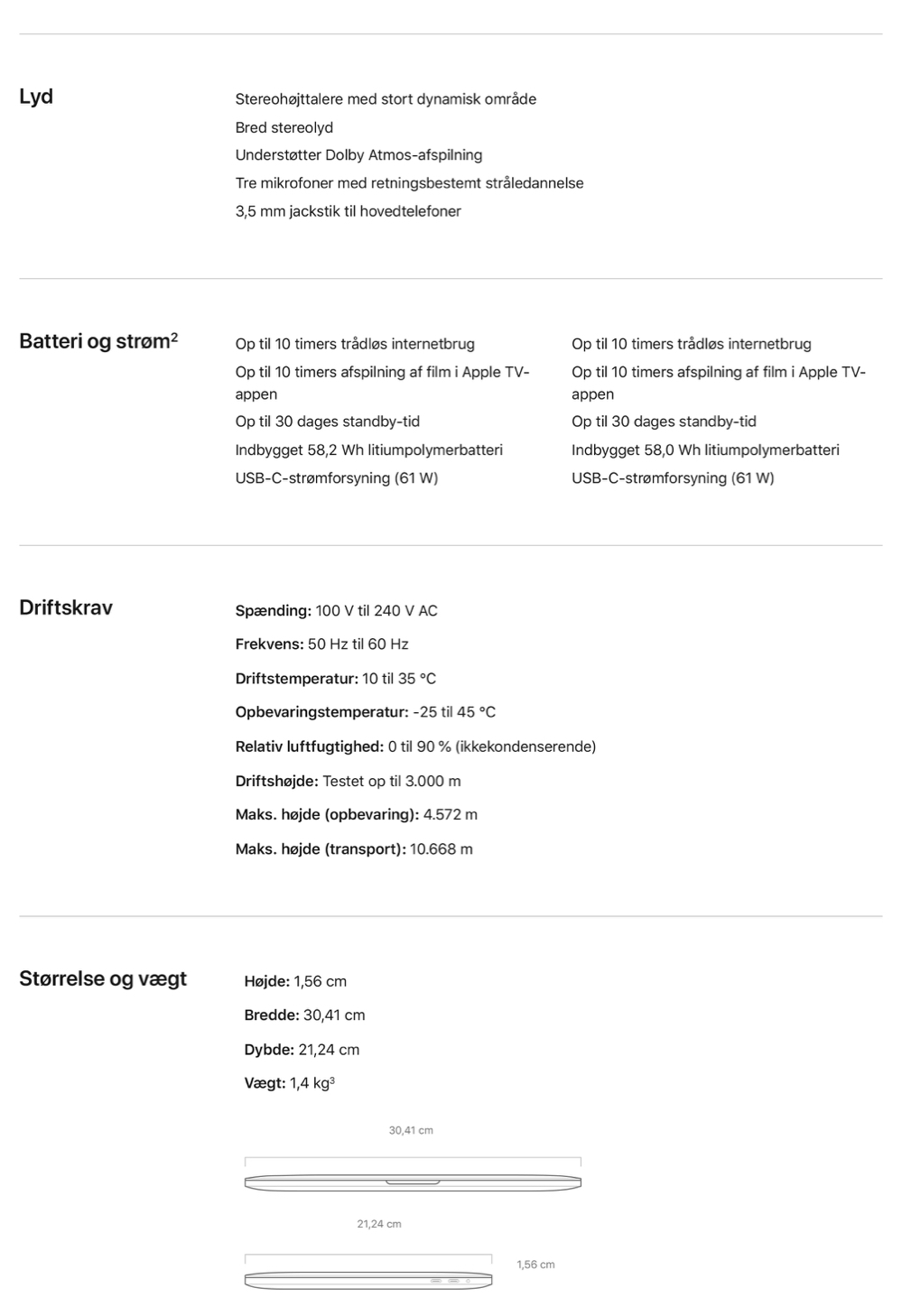 • Tekniske specifikationer