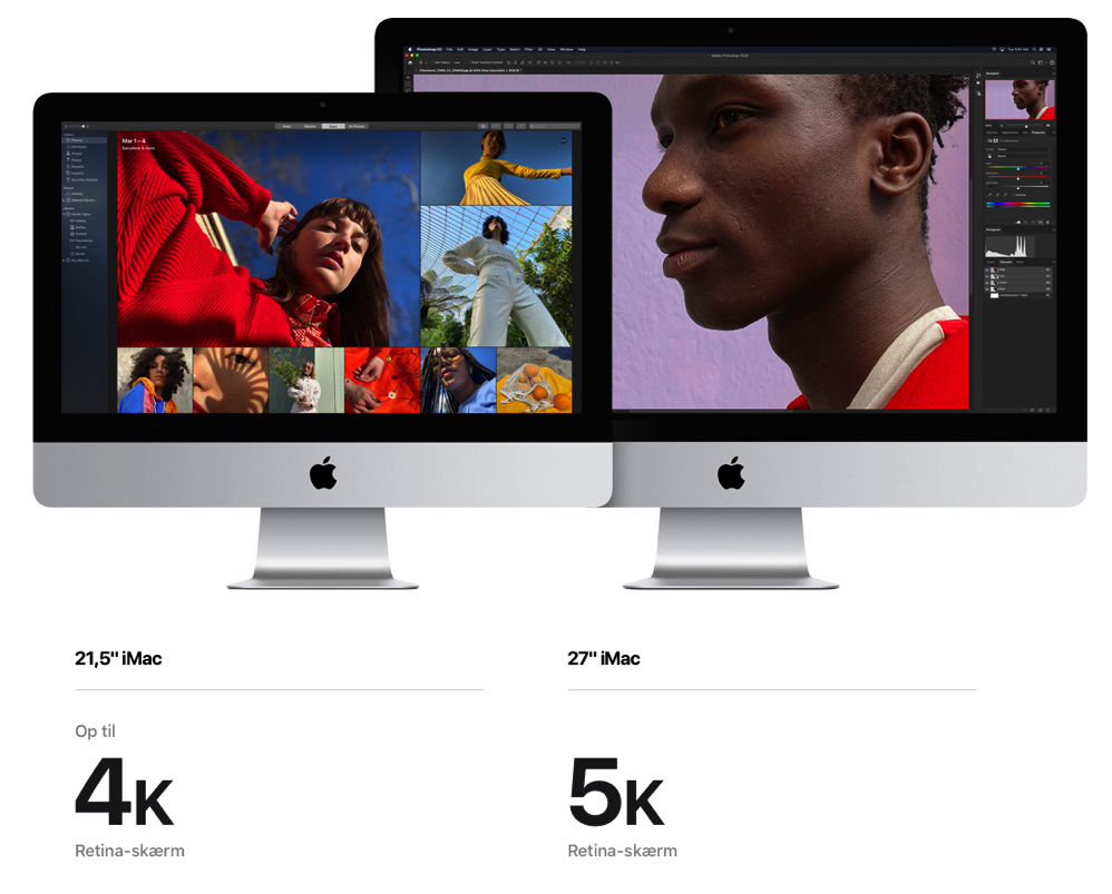 Alt i en for alle. Se dine vildeste idéer blive til virkelighed på iMac. Den har et flot design, er utroligt intuitiv og spækket med effektive værktøjer, der betyder, at du kan gå skridtet videre med alle dine projekter. Og den nye 27" model giver en bedre oplevelse på alle tænkelige måder med hurtigere processorer og grafik, udvidet hukommelse og lagringskapacitet, forbedrede lyd- og videofunktioner og en endnu mere imponerende Retina 5K-skærm. Det er computeren, der klarer det hele – bedre og hurtigere end nogensinde før.