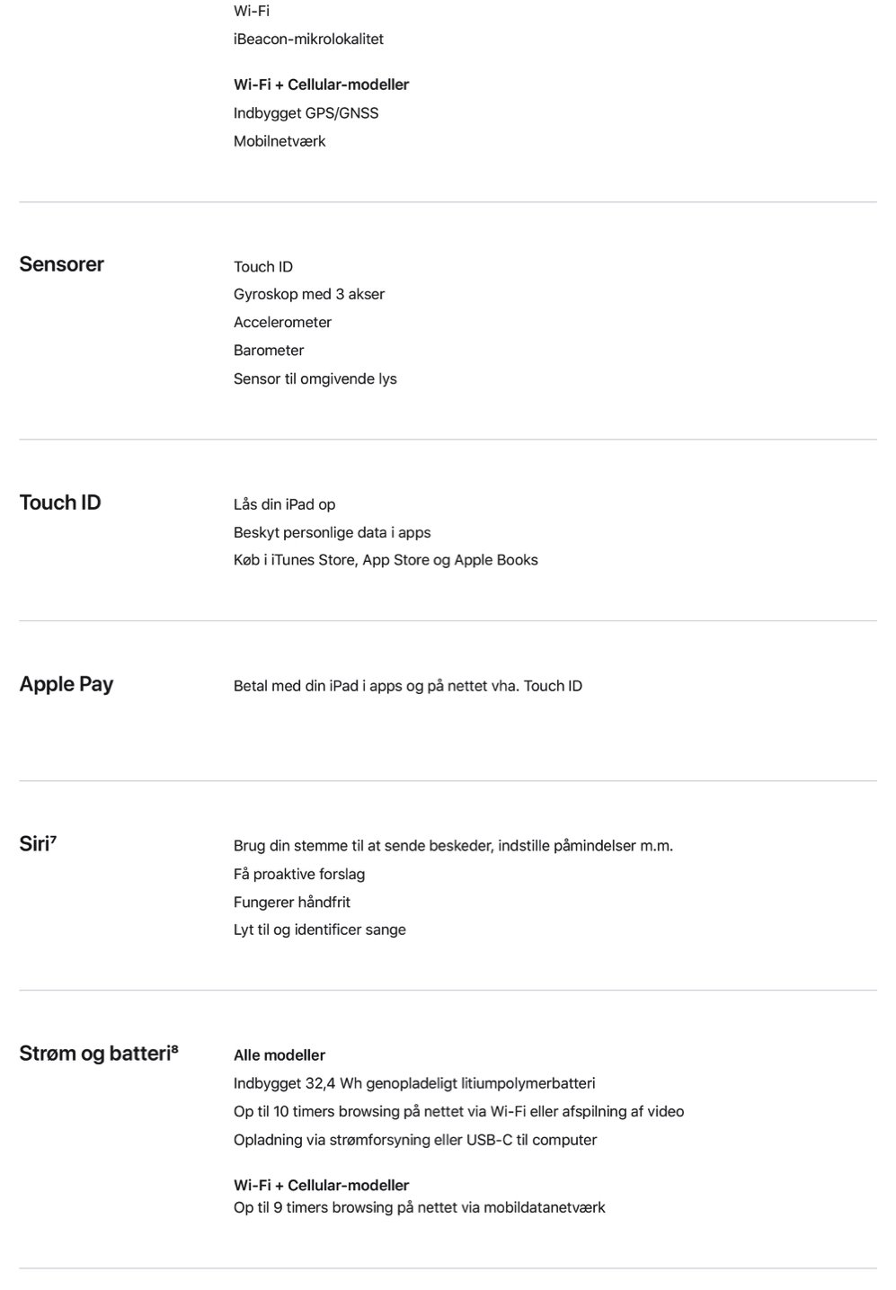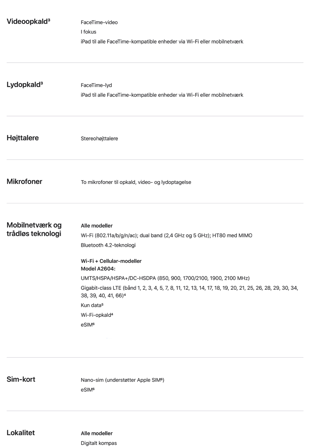 Tekniske specifikationer